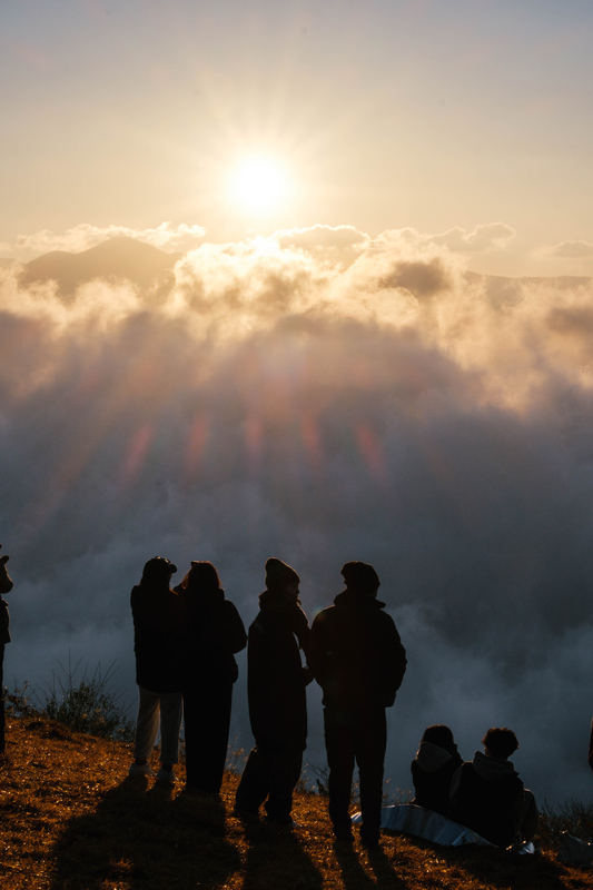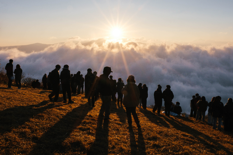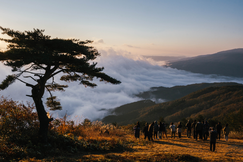 この日は雲海の出現確率が高い数値が出ていたためか、朝からとても沢山の人がこの地に訪れていました。みんな鹿さんにびっくりした同士だと思うと親近感が湧いてきますね。
